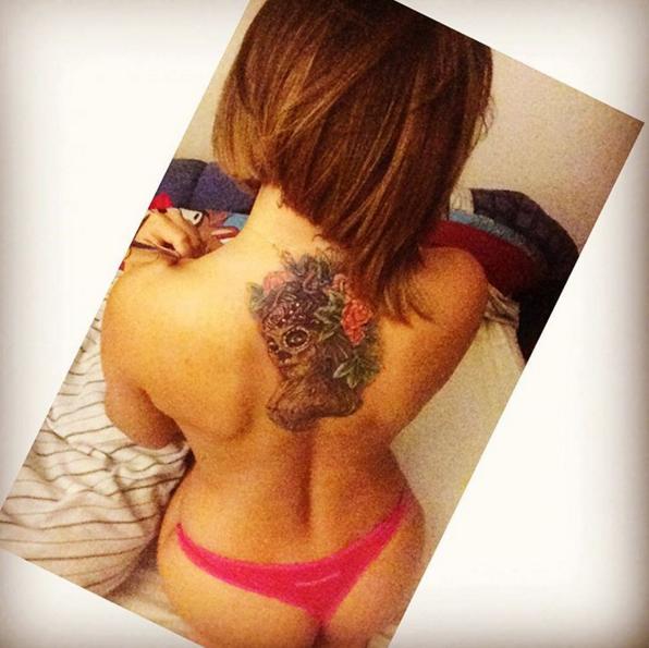 La ex “Mundos Opuestos” se hizo una gran calavera en la espalda.