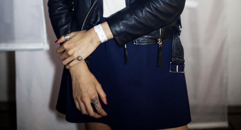 Para la ocasión lució una mini falda, una chaqueta de cuero y zapatillas, pero lo que le daba el toque propio al look eran los tatuajes de sus manos. En uno de sus nudillos tiene una carita feliz, y en otro dedo tiene tatuado un león, igual que Cara Delevingne.
