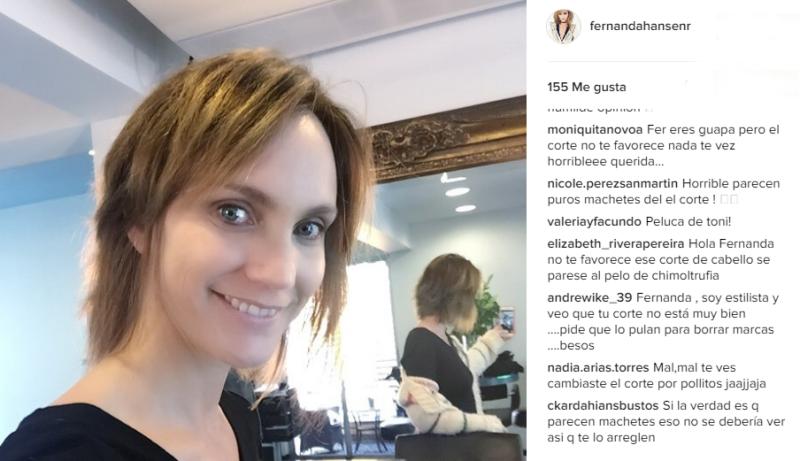 Esta semana, Fernanda Hansen se llenó de críticas en Instagram tras subir una foto de su nuevo corte de pelo.