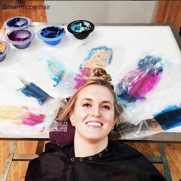 Pero ¿Qué es? Es un nuevo estilo creado por KL Christoffersen, de Michigan, (En Instagram es conocida como Mermicornhair) y consiste en algo muy parecido al balayage, pero la diferencia es que se hace con tu pelo desplegado en una mesa.
