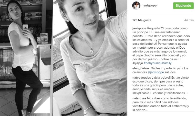 Ha sido una espera feliz y tranquila en su mayoría. La recordada ex integrante de reality shows como “Protagonistas de la Fama” y “1810”, Janis Pope, espera su primer hijo, Ciro, un proceso que ha graficado en sus redes sociales.