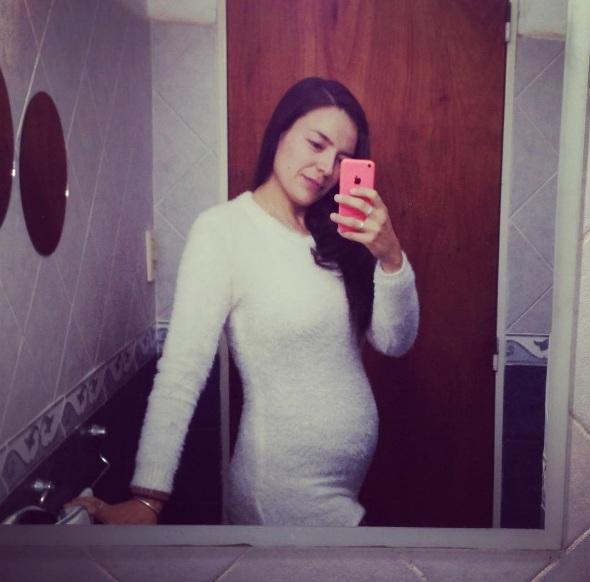 “Ya empiezo a sentir el peso del bebé uf! (sic) Pensar que le queda un montón por crecer, además el Doc advirtió que es más largo de lo normal, el papa chocho será alto como él y yo por dentro pienso... pobre de mí”, escribió.