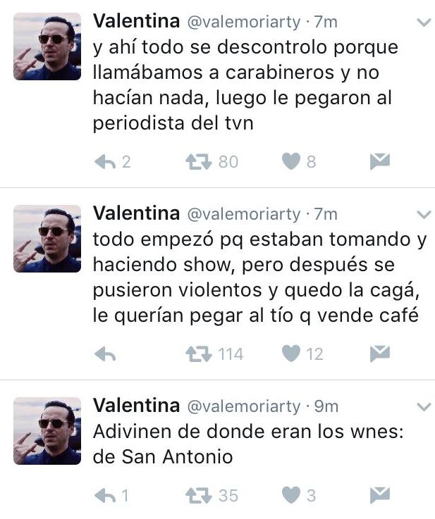 Otros relataron en sus cuentas cómo fue que se generó el incidente. Supuestamente un grupo proveniente de San Antonio que se encontraba bebiendo alcohol en galería comenzó una pelea.