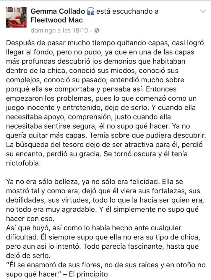 En Facebook, Gemma compartió una triste reflexión, que fe leída en el programa.