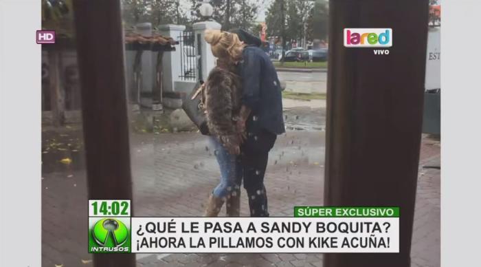 Sandy Boquita a los besos con Kike Acuña, el ex marido de Carla Jara. Así fue sorprendida la modelo discotequera nuevamente por Intrusos, ya que el día anterior la habían visto almorzando con otro pelotero, Luis Felipe Pinilla de Universidad de Chile.