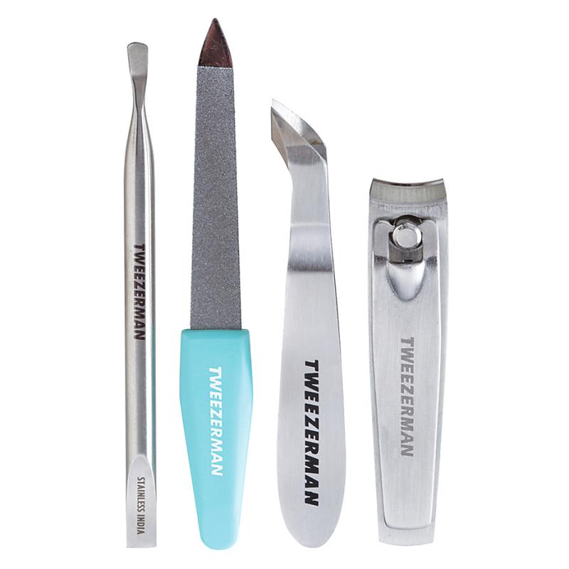 Por lo mismo, ahora te contamos que Tweezerman ha lanzado un set básico con todo lo necesario para que puedas hacerte una manicure rápida en casa, el que consiste en un cortaúñas, una lima, un corta cutículas y un baja piel y limpiador de uñas, todo en un tamaño mini, de acero inoxidable y una solución rápida para cualquier momento.