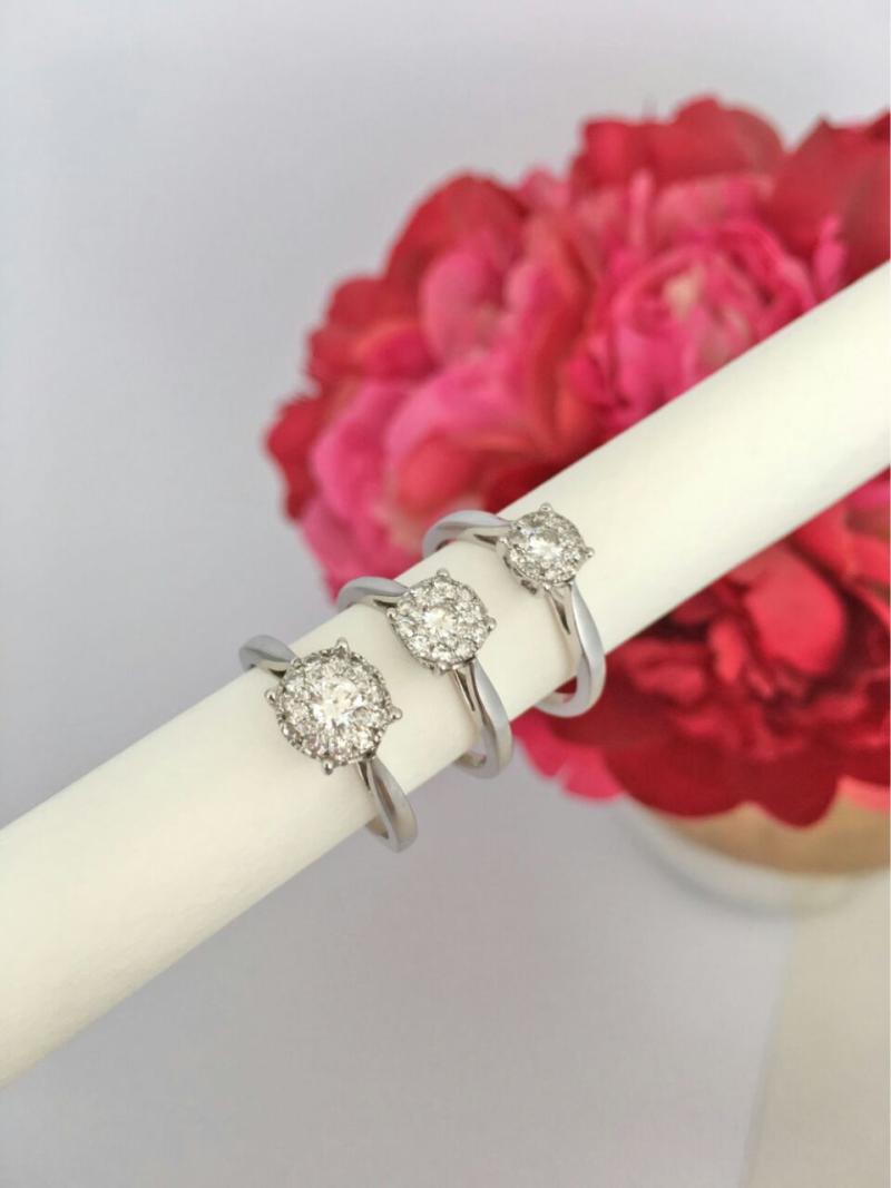"Por lo general los anillos de compromiso están compuestos de diamantes corte brillante, puede ser un diamante al centro, o una piedra de color como el zafiro, que por ejemplo esté acompañado de diamantes más pequeños, y se utiliza mucho oro blanco o platino. El oro amarillo se usa un poco menos en este tipo de anillos, pero de a poco está tomando más vuelo y hay cada vez más novios que se atreven a regalar con este color de metal", explica Sophia Schneider.