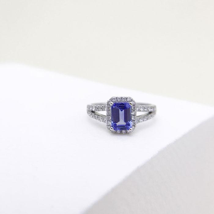 "También se regala mucho anillos con zafiro, que es una piedra preciosa de color azul. Estos vienen por lo general acompañado de diamantes para iluminarlo más".