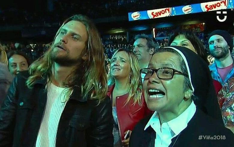 Se trata de una de las personas que llamó la atención de miles en la jornada inaugural del Festival de Viña del Mar 2018. Una monja captó el interés del público desde la primera fila del palco, junto a figuras como Jean Philippe Cretton.