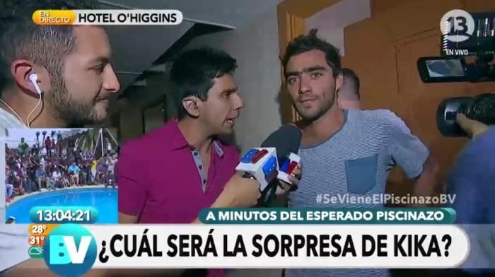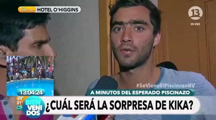 El joven apareció en “Bienvenidos” para apoyar a la modelo en su “piscinazo”.