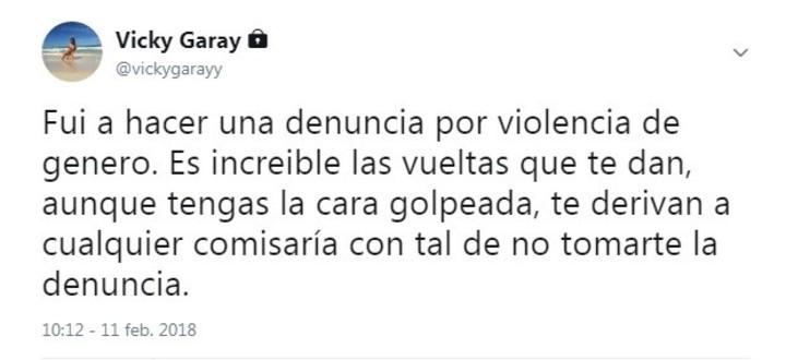“Fui a hacer una denuncia por violencia de género. Es increíble las vueltas que te dan, aunque tengas la cara golpeada, te derivan a cualquier comisaría con tal de no tomarte la denuncia”, escribió en la publicación.