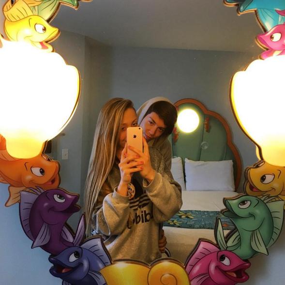 La pareja está en Orlando, Florida, y ambos están felices, especialmente ella, que ha compartido varias fotos “chocheando” con los personajes de Disney y con un regalo que le hizo Nano: una figura de vidrio de la Cenicienta y el Príncipe.