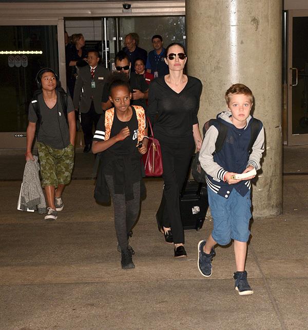La niña de 9 años fue sorprendida por paparazis en el aeropuerto con mamá y sus hermanos Maddox, Pax y Sarah. Shiloh llamó la atención de todos los flashes, pues su pelo lucía mucho más corto que de costumbre.