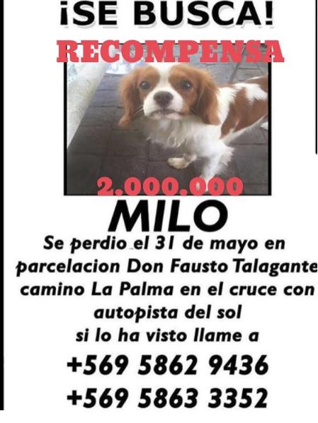 Cote López ya publicado diversos avisos para que los vecinos de Talagante conozcan a Milo, la mascota perdida y que pertenece a una de sus hijas.
