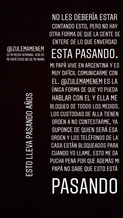 Según el joven, su media hermana Zulema lo tiene bloqueado, incluso de la casa de Carlos Menem, lo que imposibilita que Máximo tenga comunicación con su papá.