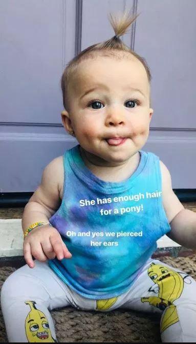 A casi ocho meses de su nacimiento, la bebé ya cuenta con sus primeros aretes en ambas orejas. Así lo dio a conocer la propia cantante a través de sus stories en Instagram, donde también mostró que su cabello le ha crecido lo suficiente para hacerle un pequeño moño.