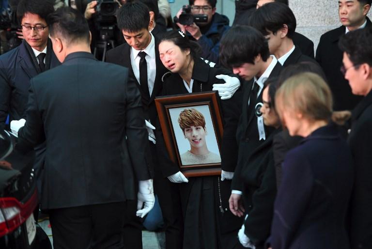La hermana de Kim Jong-Hyun encabezó la caminata, portando una foto del cantante, mientras que el resto de los miembros de SHINee sostenía el féretro junto a tres integrantes del grupo Super Junior.