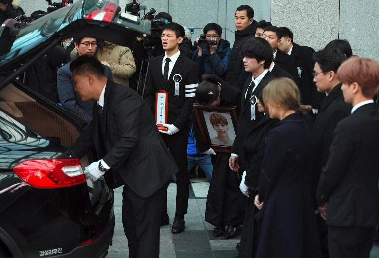 Estrellas del K-Pop se reunieron en el funeral de Kim Jong-Hyun, vestidos de negro, y trasladaron el ataúd desde el centro médico Asan de Seúl.