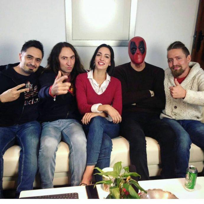 El portal Tecache compartió inéditas imágenes del ex chico reality personificado de Deadpool junto a Catalina Vallejos, Paula Bolatti y Jhendelyn Núñez durante las grabaciones del nuevo espacio.