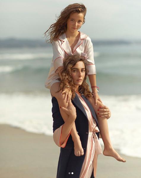 Súper editorial es la sesión que Javiera Díaz de Valdés y su hija Rosa hicieron en la playa, ambas en pijama de satín mirando el mar.