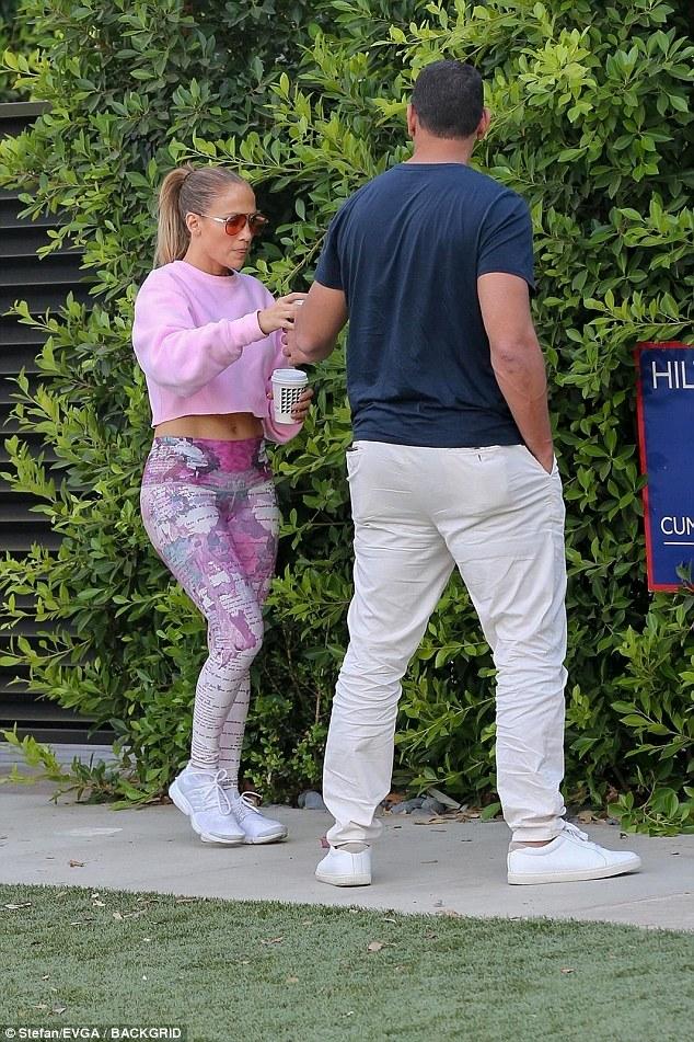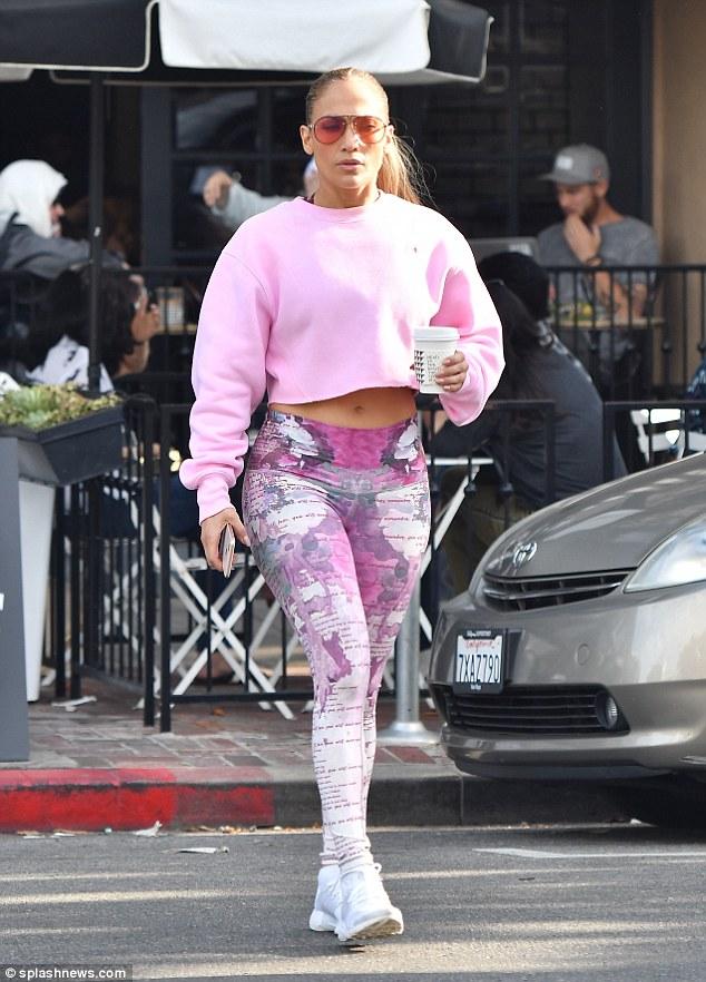 Jennifer Lopez luce llamativo look rosa con guatita al aire
