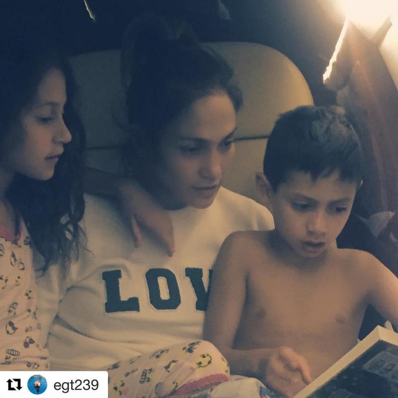 Así lo demuestra en la tierna foto que compartió en Instagram donde López lee un libro en pijamas junto a Emme y Max.