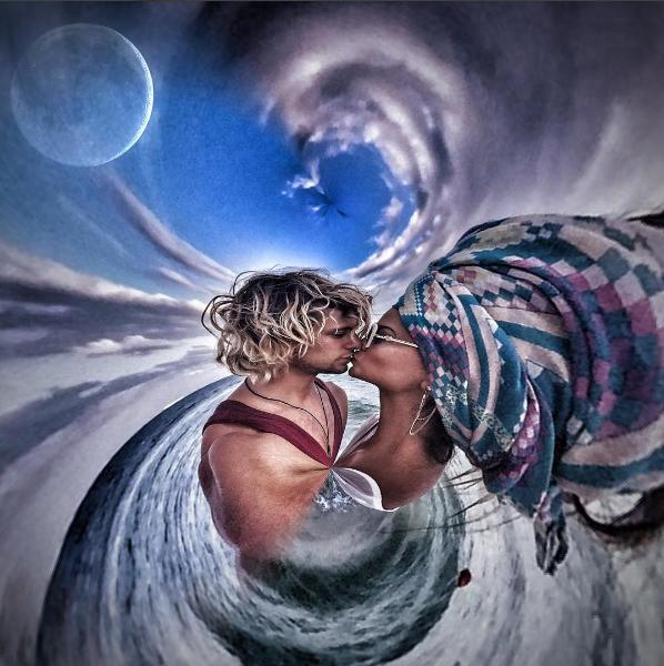 “Me encantan los cosos que te pones en la cabeza”, escribió el modelo junto a una retocada imagen de ambos besándose.