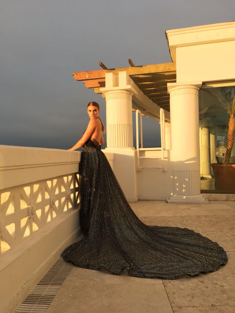 Asimismo, utilizó un clutch negro de la marca Jimmy Choo colección Cruise 2018. Además, aros y anillo Tous, zapatos Vince Camuto. Asimismo, su maquillaje y peinado estuvo a cargo de Bernardita Silva.