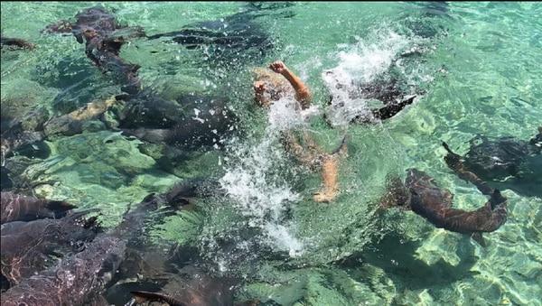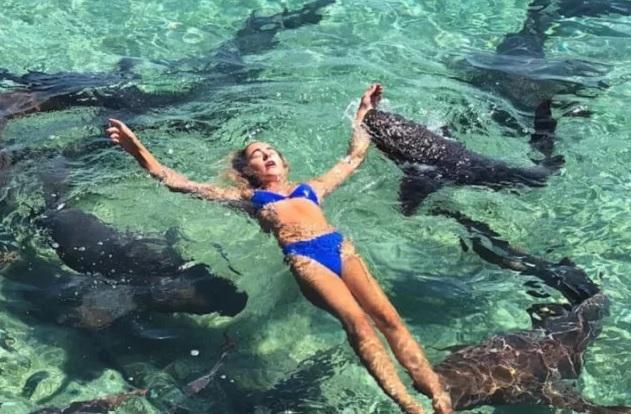 La modelo de 19 años se atrevió a nadar con rodeada de tiburones para tener la imagen perfecta pero no imaginó que uno de ellos la atacaría ferozmente en su muñeca.