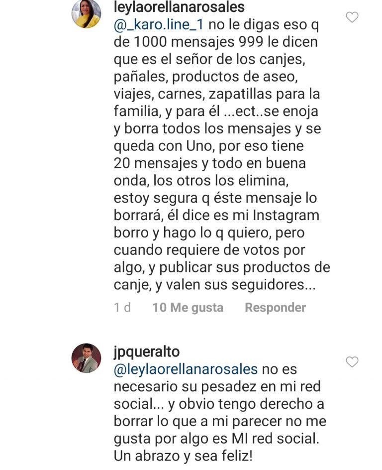 Así una sumatoria de comentarios aparecieron, de seguidores disgustados a los que Queraltó quiso responder.