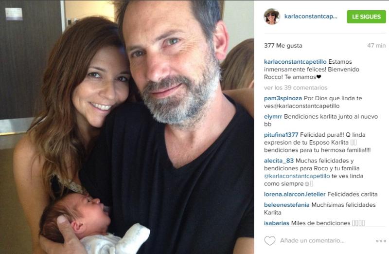A menos de un día del nacimiento, Karla utilizó su cuenta de Instagram para presentar al nuevo integrante de su familia. Esto a través de una imagen en la que aparece la animadora, su pareja Andrés Villaseca y el pequeño.