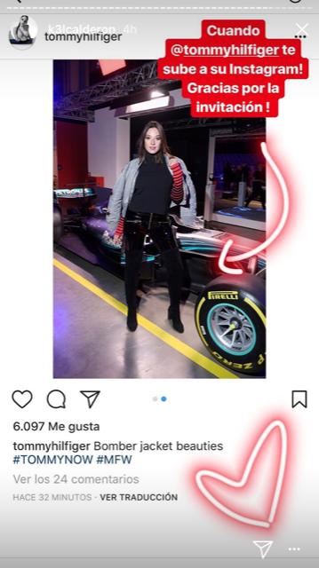 La hija de Raquel Argandoña anunció a sus seguidores que la marca Tommy Hilfiger había destacado su look en la cuenta oficial de Instagram de la compañía, y de paso les pidió a sus admiradores que la mencionaran en dicha publicación.