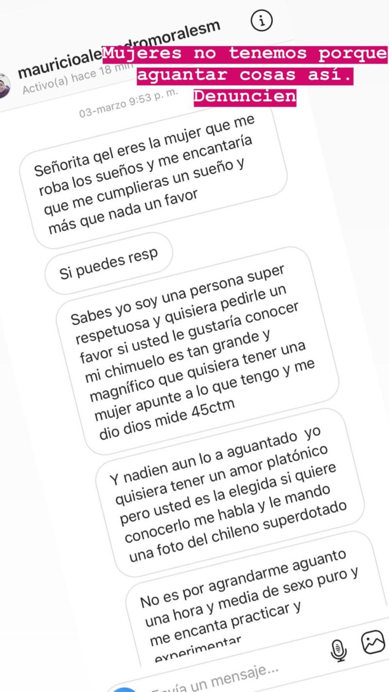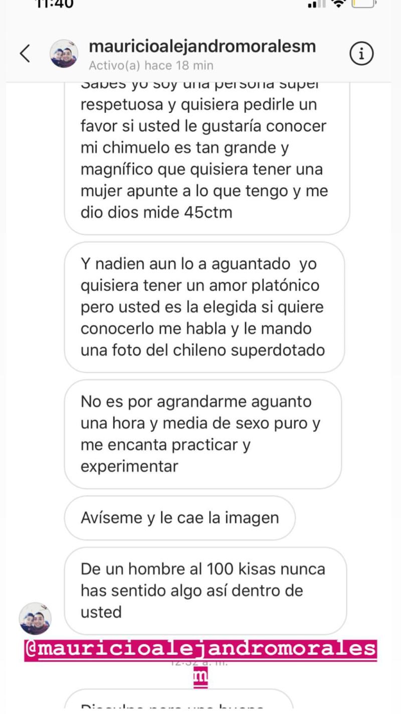 Con varias capturas de pantalla, la influencer muestra como el desconocido incluso la invita a “conocer su chimuelo”. Tras ello dio a conocer su identidad.