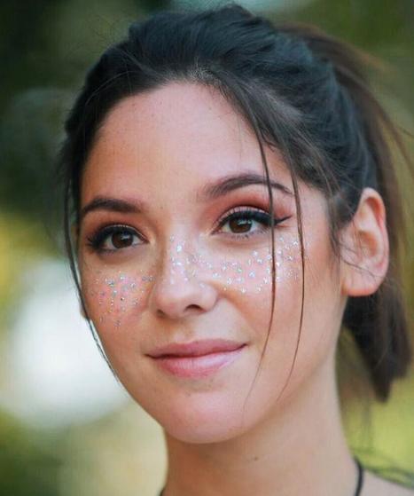 Y el foco no estuvo en su ropa, sino en el maquillaje. Kel eligió un maquillaje sencillo con un cate ye, y pecas glitter sobre las suyas, entregándole un toque de fantasía a su look.