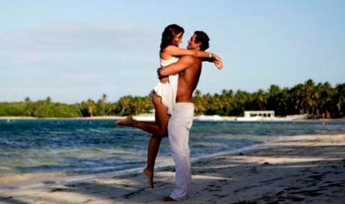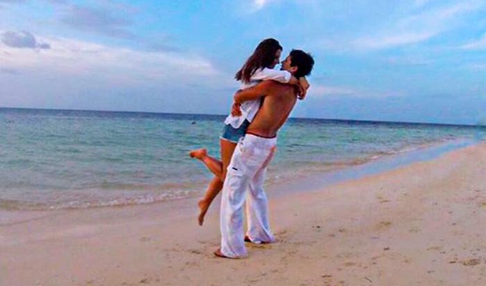 La primera es la foto que se sacó hace pocos días con su actual pareja, Pangal Andrade, durante sus vacaciones en Jamaica. Él con pantalones blancos, la levanta tomándola por la cintura. Ella usando una blusa blanca y short de jeans sonríe, lo mira y levanta levemente la pierna derecha.