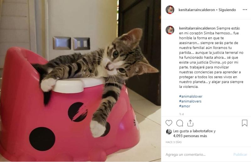 “Siempre estás en mi corazón Simba hermoso... fue horrible la forma en que te asesinaron... siempre serás parte de nuestra familia! aún lloramos tu partida.... aunque la justicia terrenal no ha funcionado hasta ahora... sé que existe una justicia Divina...yo por mi parte, trabajaré para movilizar nuestras conciencias para aprender a proteger a todos los seres vivos en nuestro planeta... y alejar para siempre la violencia”, escribió junto a una foto del animalito en Instagram.