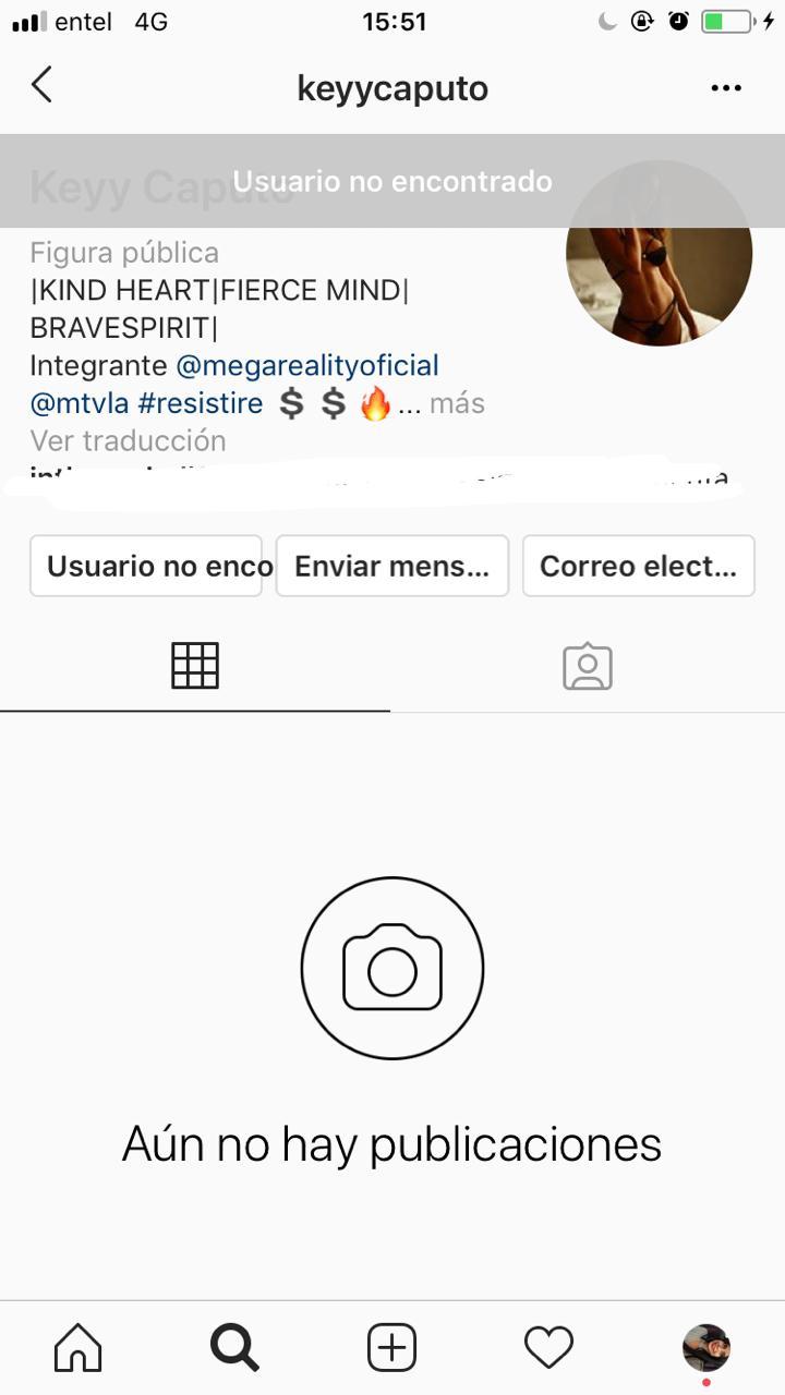 El usuario @keyycaputo, donde supera los 500 mil seguidores, simplemente no es encontrado a la hora de realizar búsquedas, lo que coincide con la lluvia de críticas y comentarios negativos que recibió durante la noche.