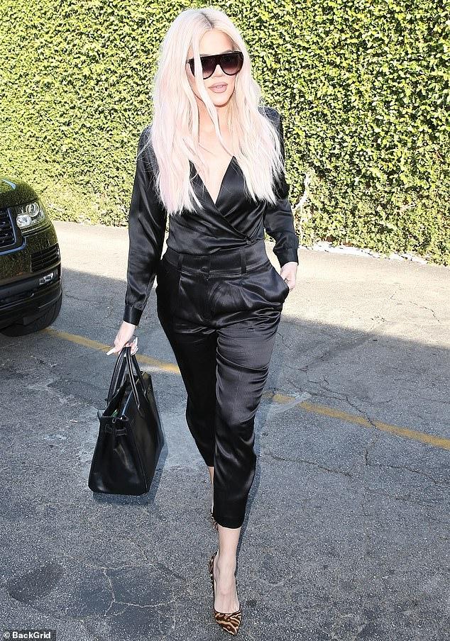 Khloé Kardashian luce conjunto de seda que estiliza su figura