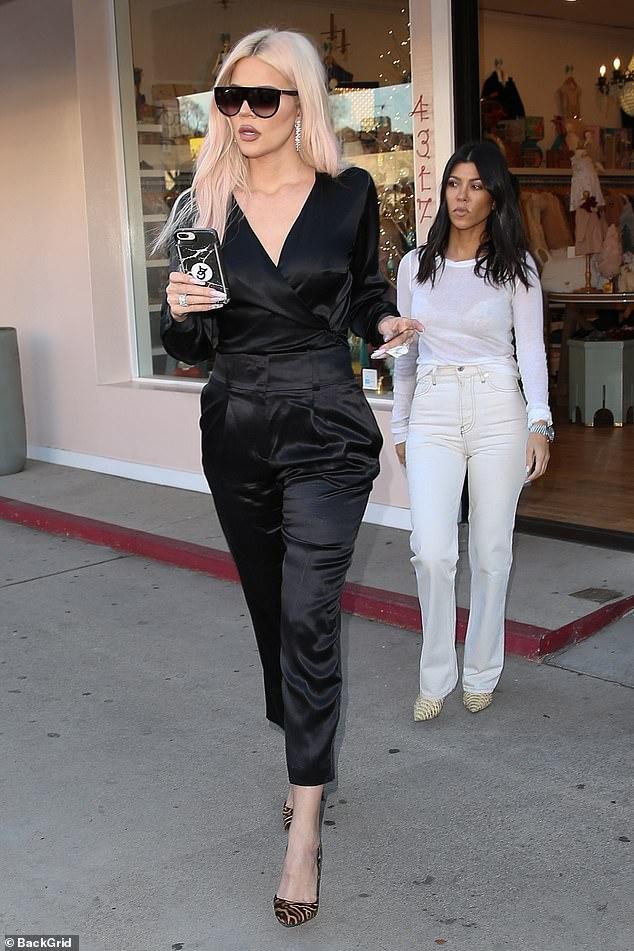 La celebrity hoy es alabada por los medios especializados por lucir espléndida en un ceñido conjunto de seda durante una salida en Los Ángeles junto a su hermana Kourtney.