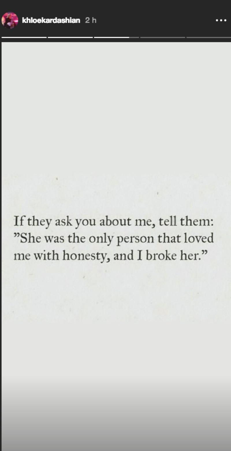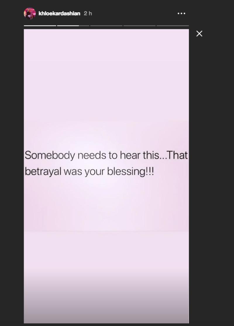 En Instagram Stories una serie de mensajes dan a entender que sin lugar a dudas Khloé habla de la traición de su ahora ex: