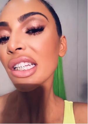 Kim Kardashian rompe austeridad en accesorios con diamantes en sus dientes