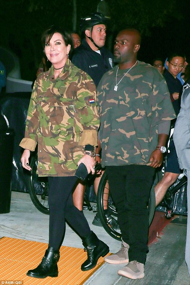 Quien quiso hacerlo fue Kris Jenner y lo hizo en una de las presentaciones de Kanye West. Junto a su novio Corey Gamble, aparecieron con una prenda muy parecida, oversize, y con estampado militar, aunque en distintos tonos.