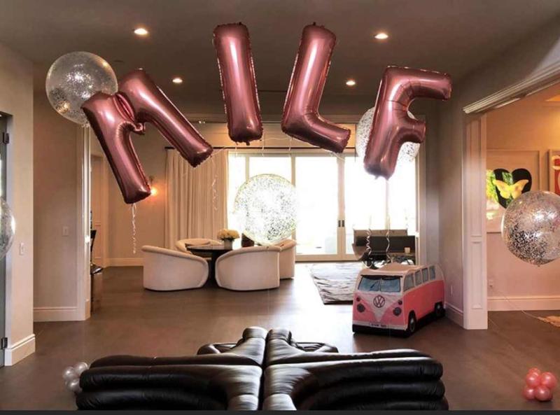 Y como Kylie cae en la categoría de las mamis, presumió ser una MILF y con globos de letras adornó su casa en un día tan especial.