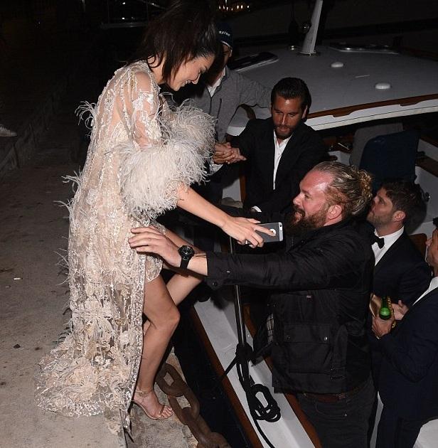 Tras asistir al evento organizado por joyas Chopard, la modelo de 20 años se dirigió a un “after party” organizado por Paul Allen, cofundador de Microsoft, que se llevó a cabo en un exclusivo yate.