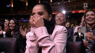 Y aunque la intérprete de "Mayores" se divirtió durante toda la presentación, su reacción fue de sorpresa cuando el propio Avello la incluyó en la rutina cantando su tema "Sin pijama"