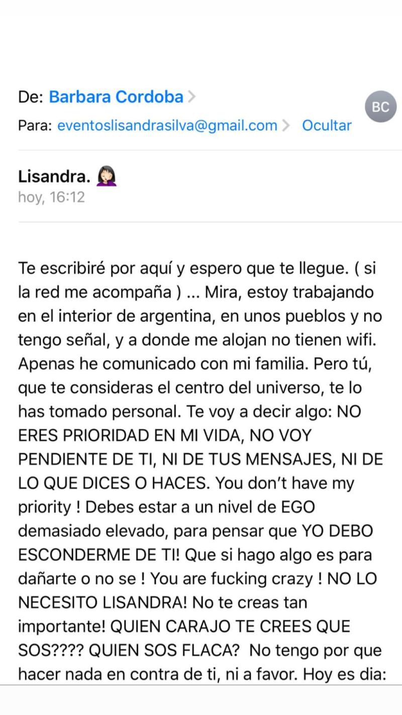 La dura amenaza de Bárbara Córdoba a Lisandra Silva