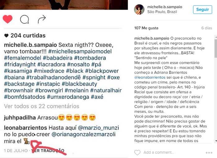 El asunto no quedó ahí y la curvilínea tiene todas las ganas de llevar este comentario a la justicia chilena, por considerarlo racista.