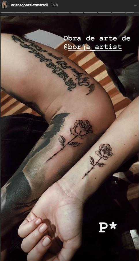 En las stories que compartió se puede apreciar que la pareja quiso inmortalizar su amor con el tatuaje de una rosa.