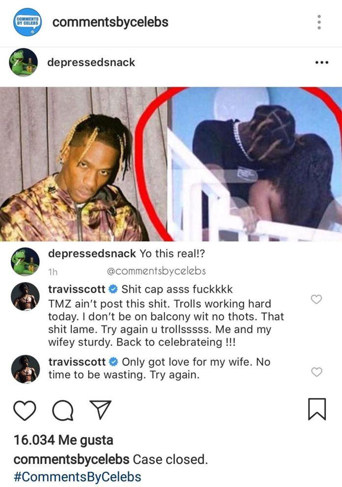 En diciembre de 2018, la estrella de YouTube Christian Adam se vistió de Scott y posó como si le estuviera dando un beso a una mujer misteriosa, lo que fue una trampa para aruinara la relación de Kylie y Travis. Pero el rapero aclaró de inmediato los rumores de infidelidad diciendo que no era él y que se trataba de una trampa.