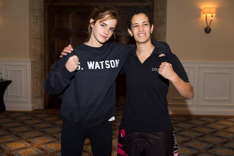 Dentro de la alfombra roja no tenemos nada que decir, siempre deslumbra con total elegancia y sofisticación, pero para tener ambas partes de la moneda, Watson comenzó con clases de SheFighter, entrenamiento de defensa personal para las mujeres del Medio Oriente.